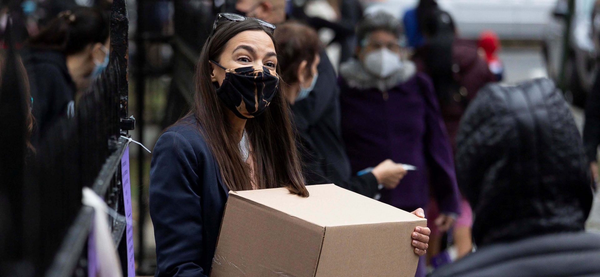 Ocasio-Cortez, de campaña, reparte comida en barrio golpeado por la covid-19